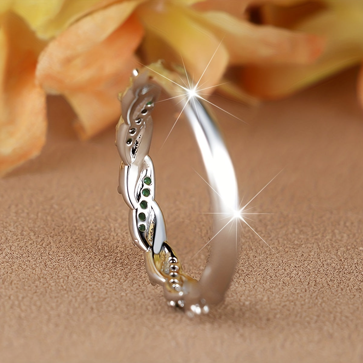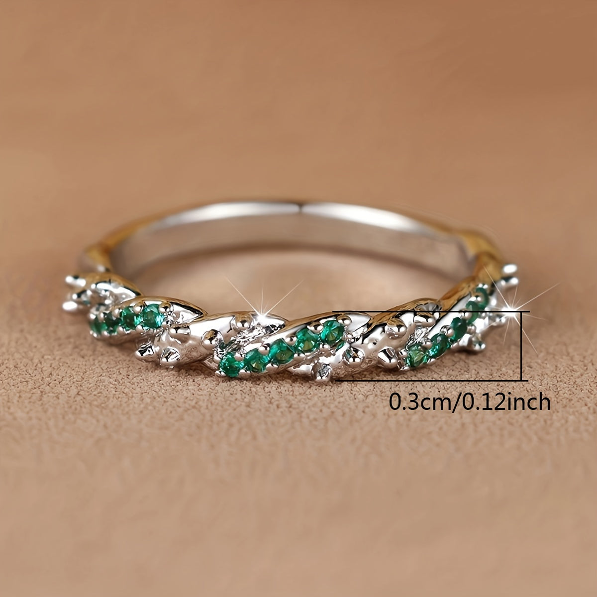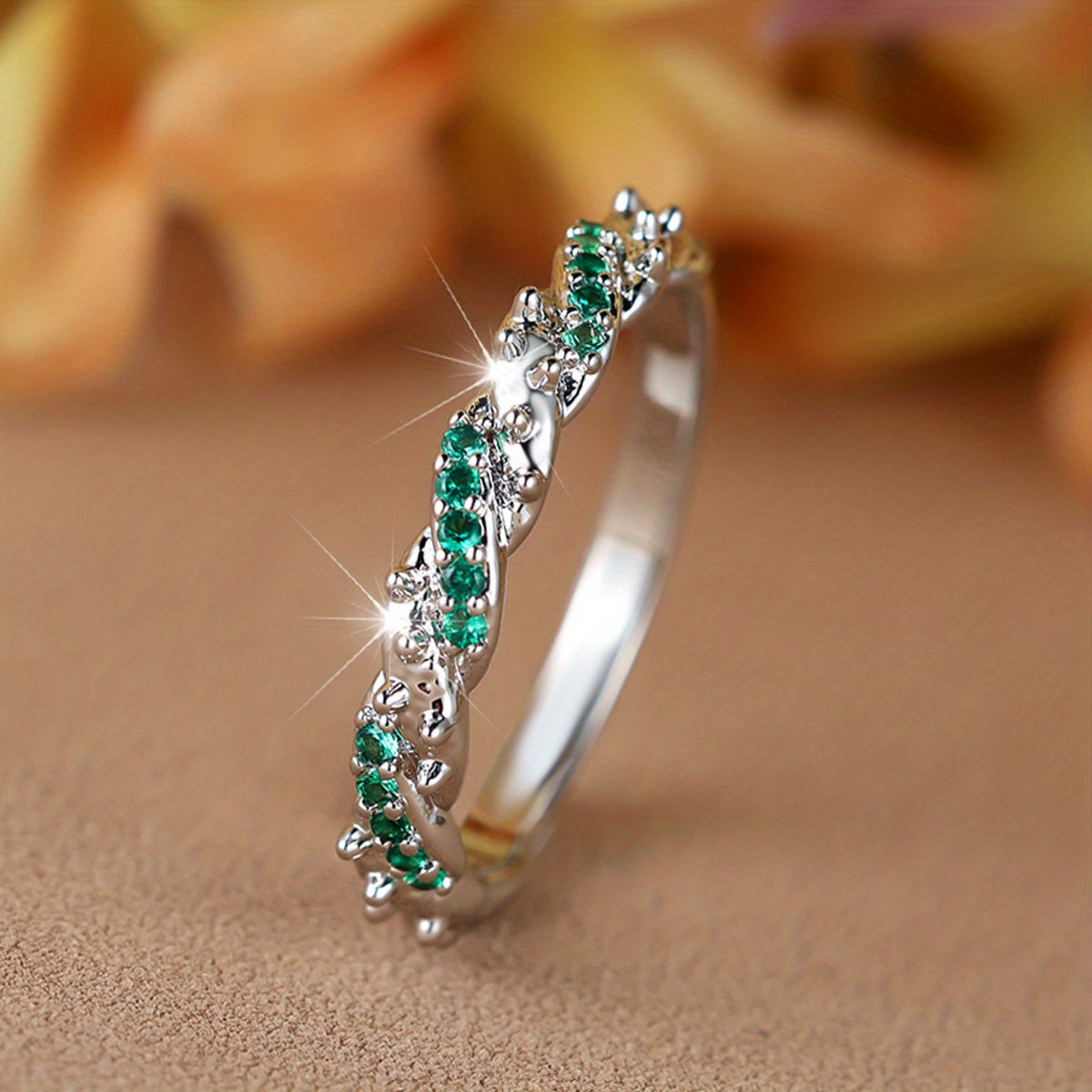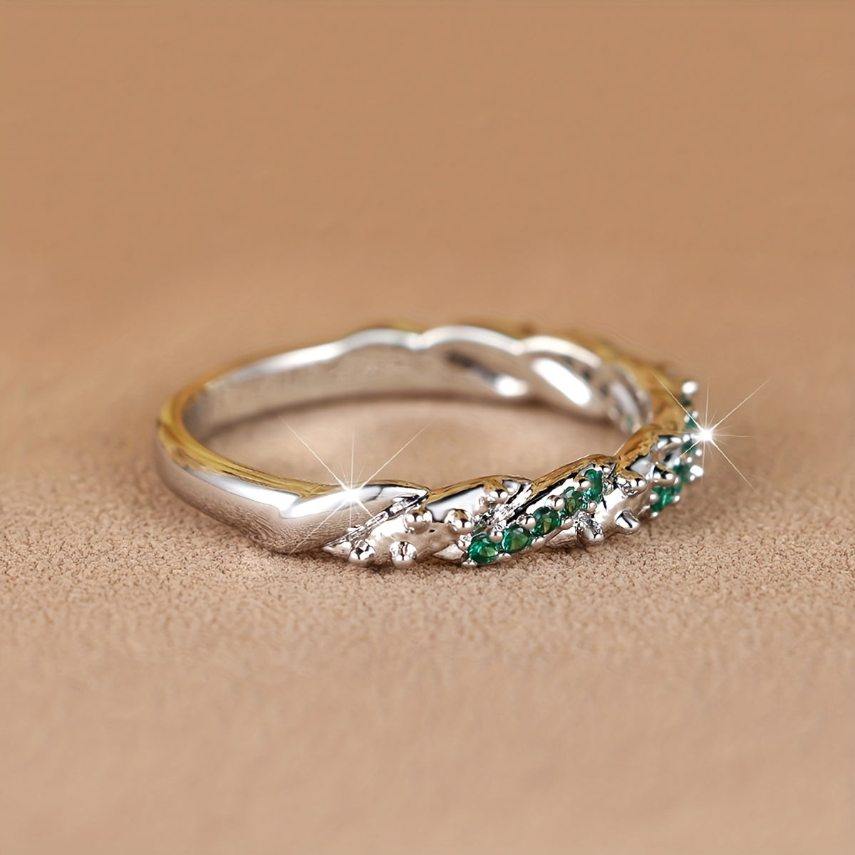 この洗練された絡み合ったリングで忘れられない印象を与えましょう。美しく絡み合ったバンドにセッ​​トされた眩しいグリーンジルコニアストーンが特徴です。日常使いや特別なシーンに最適で、このステートメントピースはボヘミアンスタイルと現代のエレガンスを融合させ、どんなアウトフィットにも最適化されたトレンディナタッチを加えます。