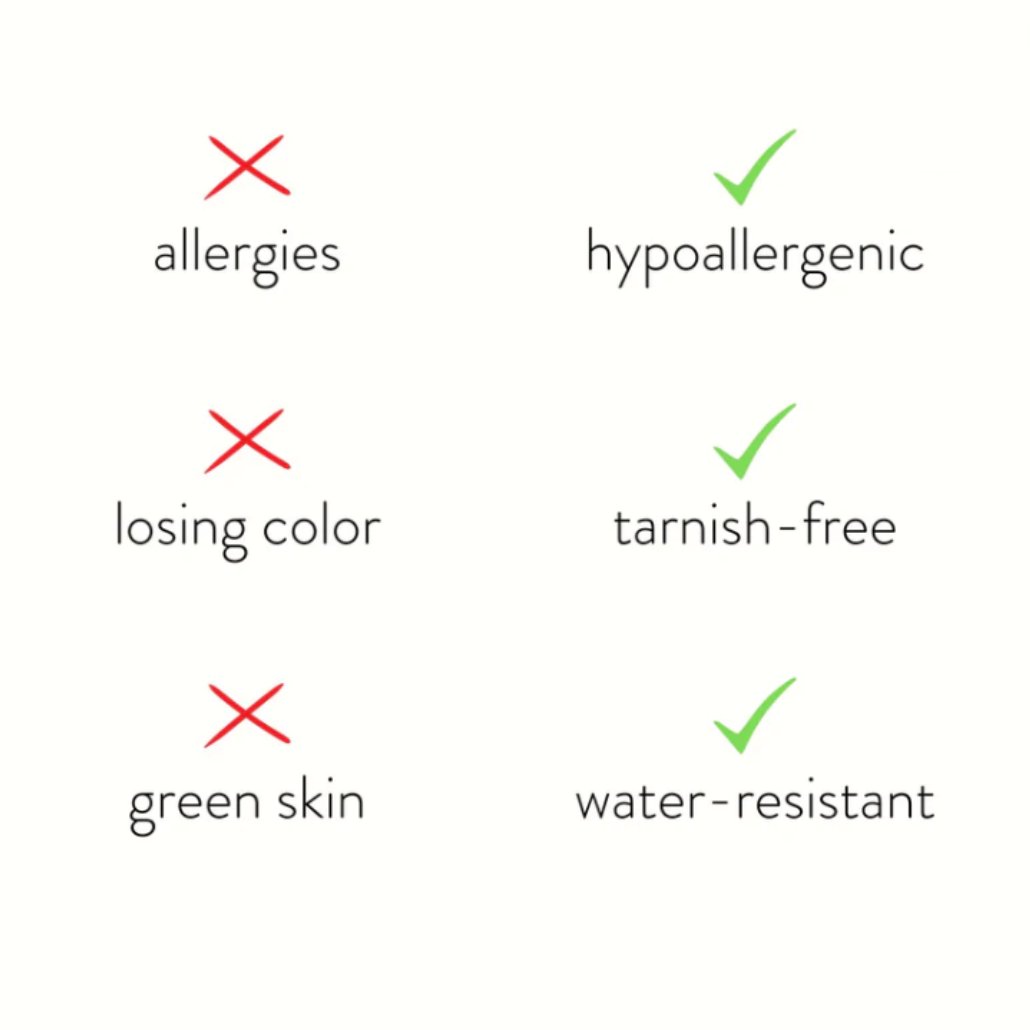 主な特徴:防水&変色なし • ステンレススチール • アレルギーを気にしない、鉛&ニッケルフリー