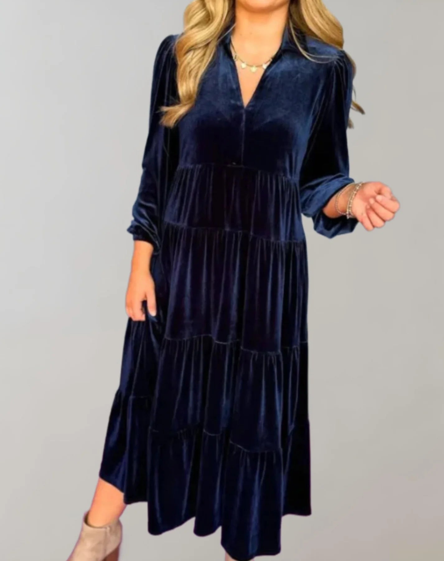Melba - Vネックのゆったりベルベットドレス